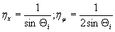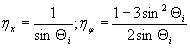 Значения коэффициентов ηх и ηφ определяют согласно п. 1.1, в. Расчетные зависимости справедливы при выполнении следующих условий: 1) угловая меридиональная координата края сферической или эллипсоидальной оболочки Θi > 15°; 2)