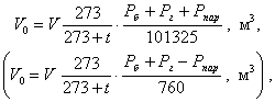где V0 - объем сухого газа, приведенный к .нормальным условиям, м3; t - время, в течение которого измерялся объем расходуемого газа, ч. Время должно замеряться секундомером по ГОСТ 5072-79. Объем сухого газа, приведенный к нормальным условиям, следует определять по формуле