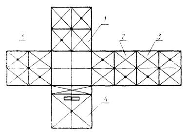 где m0 - масса деталей до погружения в пентан, г; т1 - масса деталей спустя 1 мин после извлечения из пентана, г; т2 - масса деталей спустя 24 ч после извлечения из пентана, г. 4.23. Температуру нагрева наружных поверхностей и деталей аппарата (пп. 2.22, 2.23) следует определять при помощи поверхностных термопар типа ТКХ с милливольтметром пирометрическим по ГОСТ 9736-80 или термометром сопротивления по технической документации, утвержденной в установленном порядке с логометром по ГОСТ 9736-80 при максимальном давлении газа перед аппаратом и максимальной температуре воды на выходе. Схема расположения точек приведена на черт. 5. (Измененная редакция, Изм. № 6). 4.24. Испытание аппарата на транспортную тряску (п. 2.24) должны проводить на стенде в течение (35 ± 1) мин при средней перегрузке 2,4 g и частоте 9 Гц. Аппарат должен быть жестко укреплен на стенде. После испытаний аппаратов на транспортную тряску их следует проверить на соответствие всем требованиям настоящего стандарта. 5. МАРКИРОВКА, УПАКОВКА, ТРАНСПОРТИРОВАНИЕ И ХРАНЕНИЕ5.1. Каждый аппарат должен иметь табличку по ГОСТ 12969-67, прикрепленную в доступном месте (исключая лицевую поверхность) и содержащую: наименование или товарный знак предприятия-изготовителя; порядковый номер аппарата по системе нумерации предприятия-изготовителя; год и месяц выпуска; условное обозначение аппарата; величину номинального давления в Па и теплоту сгорания газа в кДж/м3, на которые рассчитан аппарат; тепловую мощность аппарата в Вт, Маркировка должна быть нанесена способом, обеспечивающим ее сохранность в течение всего срока службы аппарата. (Измененная редакция, Изм. № 2, 5, 6). 5.2. Все обработанные неокрашенные наружные детали аппарата и резьбовые концы штуцеров должны быть подвергнуты консервации по ГОСТ 9.014-78 по II группе изделий для категорий условий хранения и транспортирования 2 (С). Срок действия консервации - 12 мес. Отверстия штуцеров должны быть защищены от засорения. (Измененная редакция, Изм. № 3, 6). Схема расположения точек измерения температур нагрева наружных поверхностей и деталей аппарата 1 - задняя стенка; 2 - правая стенка; 3 - пол; 4 - передняя стенка; 5 - левая стенка. Места измерения температур отмечены точками. Черт. 5 5.3. Каждый аппарат должен быть обернут двухслойной упаковочной бумагой по ГОСТ 8828-89 или мешочной бумагой по ГОСТ 2228-81, или другой бумагой, обеспечивающей сохранность аппарата, обвязан шпагатом и упакован в деревянную обрешетку (типов I-3, II-1, II-2, II-3 по ГОСТ 12082-82), или комбинированную обрешетку, изготовленную по техническим условиям и рабочим чертежам, утвержденным в установленном порядке, или в тару из гофрированного картона (марки П.Т по ГОСТ 9142-90) с усилением жесткости ящика вспомогательными упаковочными средствами-вкладышами. При отправке в районы Крайнего Севера и труднодоступные районы транспортная тара и упаковка аппаратов должны соответствовать группе 102 ГОСТ 15846-79. (Измененная редакция, Изм. № 2, 5, 6). 5.4. Руководство по эксплуатации аппарата должно быть уложено в пакет из полиэтиленовой пленки по ГОСТ 10354-82 или завернуто в водонепроницаемую бумагу по ГОСТ 8828-89. (Измененная редакция, Изм. № 6). 5.5. Хранение аппаратов - по условиям хранения 2 (С) по ГОСТ 15150-69. (Измененная редакция, Изм. № 6). 5.6. Аппараты транспортируют железнодорожным транспортом в крытых вагонах или автомобильным транспортом в соот