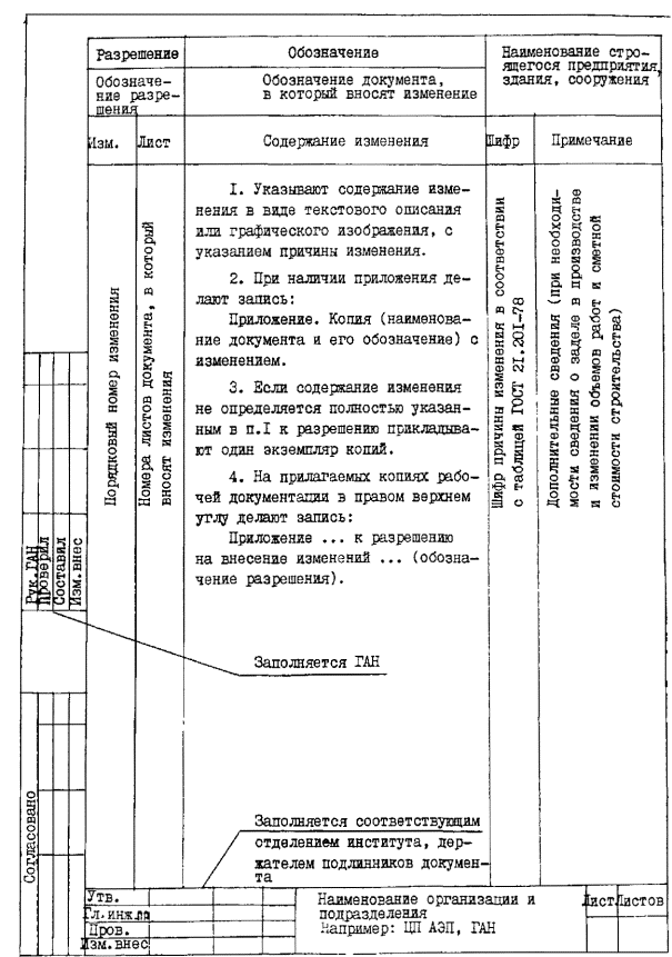 документа для утверждения разрешения и внесения изменений в подлинники.