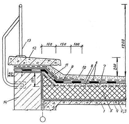 1-6. На перекрытии верхнего этажа жилого дома любого функционального назначения с отметкой пола 65 м и выше от уровня земли, у гостиниц при количестве этажей более 16 (выше 50 м от средней планировочной отметки проезда, предназначенного для подъезда пожарных автомашин, до отметки пола верхнего этажа) следует предусматривать площадку для эвакуации людей при пожаре пожарными вертолетами размером не менее 5´5 м. У зданий (20 - 22 этажа и гостиниц 16 этажей и выше) садов на крышах не устраивать. Статическая нагрузка составляет: для вертолета К-12 - 11 тонн, для вертолета МИ-17 - 12 тонн. Динамическая нагрузка при посадке этих вертолетов составляет 22 тонны и 24 тонны соответственно. На крышах домов, на которых устраиваются вертолетные площадки, не допускается размещение объектов, которые могут создать помехи при посадке вертолетов. 1-7. Уровень кровли встроенно-пристроенных (пристроенных) учреждений общественного назначения в местах примыкания к жилой части здания не должен превышать отметки пола жилых помещений. 1-8. Озеленение крыш повышает теплоизоляцию здания, в значительной степени нивелируя резкие перепады температур в течение года; обеспечивает сохранность гидроизолирующего покрытия любой крыши, удлиняя во много раз периоды между капитальными ремонтами крыш. Озелененная крыша лучше поглощает шумы и пыль, создает собственный благоприятный климат. 1-9. Для размещения архитектурно-ландшафтных объектов используются покрытия с несущими железобетонными плитами. 1-10. По периметру эксплуатируемой кровли, используемой для садов на крышах, должен быть установлен парапет высотой 1,2 м, на котором должно быть закреплено сетчатое ограждение высотой не менее 1 м. Для «зеленых крыш» - парапет высотой 1,2 м без сетчатого ограждения. Наземные сады должны быть ограждены от другой территории высоким бортом не менее 0,5 м, чтобы исключить заезд на кровлю автотранспорта. 1-11. Особое внимание необходимо обратить на отвод воды с кровли; его необходимо предусматривать преимущественно внутренним с обеспечением уклона кровли 1,5 - 3% к водоотводящим устройствам. 1-12. Уклон кровли можно создать наклоном несущей плиты покрытия, что является предпочтительным, либо укладкой слоя керамзитового гравия переменной толщины с проливкой цементным раствором. 1-13. При недостаточной несущей способности плит покрытия необходимо предусмотреть их усиление в соответствии с расчетом. Сечения ригелей должны быть подобраны с учетом увеличенной нагрузки. 1-14. В случае, если архитектурно-ландшафтный объект предполагается создать на уже существующем здании или сооружении, то необходимо проверить состояние несущей способности всех конструктивных элементов здания и состояние конструкции самой кровли с привлечением специалистов (МосжилНИИпроект, ЦНИИПпромзданий и др.). 1-15. Размещение архитектурно-ландшафтных объектов на крышах и подземных сооружениях требует специальной конструкции этих кровель с устройством уклонообразующего слоя, пароизоляционных, теплоизоляционных, противокорневых, водоизоляционных, фильтрующих и дренажных и разделительных слоев. Материалы, используемые в этих конструкциях, должны быть гостированы, сертифицированы; по своим экологическим и техническим качествам они должны быть разрешены к использованию в Москве. 2. ПРОТИВОПОЖАРНЫЕ ТРЕБОВАНИЯ И МОЛНИЕЗАЩ