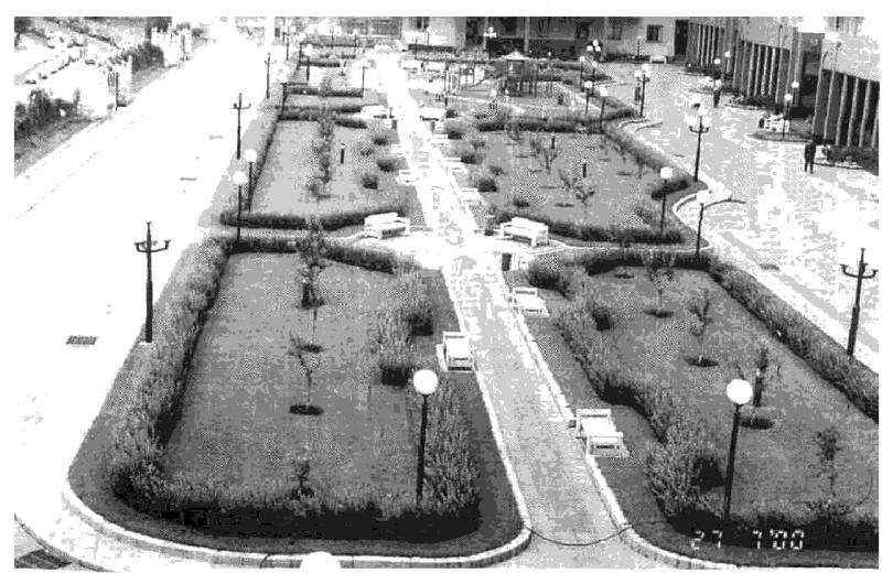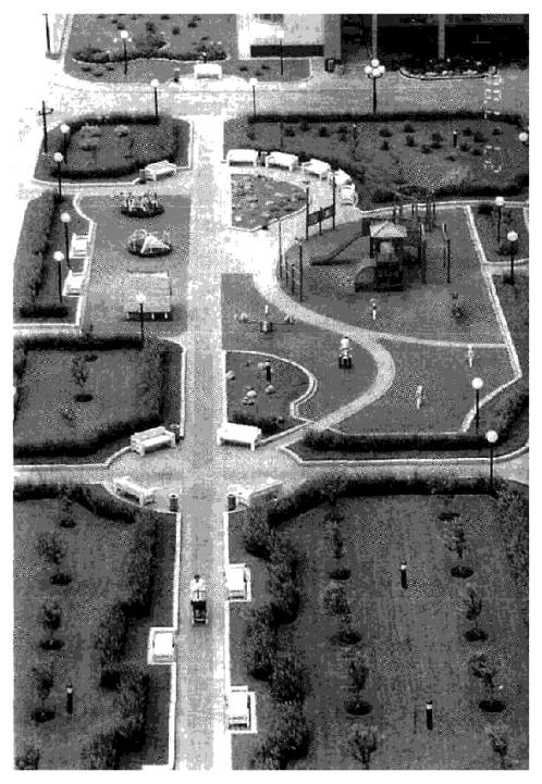 В соответствии с пожеланиями заказчика набор малых форм может быть скорректирован как в сторону уменьшения, так и расширения номенклатуры. 10-16. Освещение сада на крыше Сады на крышах могут посещаться и в вечернее время, в связи с чем возникает проблема их освещения и подсветки растений. Для этого используются стационарные светильники различной формы. Низкими светильниками можно освещать ступени и пандусы (свет направлен вниз). Для подсветки растений и воды можно использовать разные варианты подсветки светильниками на траве, на дорожке, в структуре подпорной стенки, на дне чаши водоема. Для подсветки хвойных пород рекомендуется использовать ртутные лампы, дающие голубовато-зеленое освещение, натриевые светильники рекомендуются для подсветки осенней листвы. Следует учитывать, что излишнее применение подсветки может вызвать нежелательное ускорение роста растений. Минимальное воздействие оказывают светильники, размещенные у пешеходных дорожек и освещающие путь пешеходам. 11. ЭЛЕМЕНТЫ НАЗЕМНЫХ САДОВ НА ИСКУССТВЕННЫХ ОСНОВАНИЯХ11-1. Структура наземных садов над подземными сооружениями (гаражами, объектами ГО и т.д.) близка к структуре территорий садов на крышах. Одновременно они входят в композицию прилегающих озелененных территорий. 11-2. В отличие от садов на крышах часть территории может быть использована под автостоянку, что требует использования на этом участке усиленных несущих конструкций подземных сооружений, позволяющих применять дорожные плиты или укладку асфальта на этот участок. Конструкция верхнего покрытия автостоянки на кровле подземного сооружения принимается аналогичной конструкции подъездов к зданию. 11-3. Территория наземного сада должна быть ограничена высоким бортом высотой 0,5 м для предотвращения заезда автотранспорта. Спортивные площадки должны быть ограждены сеткой высотой до 4 м. 11-4. Необходимо предусматривать, чтобы любые площадки (отдыха, детские, спортивные) располагались не ближе 15 м от вентиляционных шахт. 11-5. При устройстве детских и спортивных площадок на кровлях подземных сооружений на дренажный слой укладывается гравийный или известняковый щебень толщиной слоя 10 см. Щебень укладывается слоями (3 - 4 см), каждый слой при этом проливается и укатывается катком. На щебень укладывается спецсмесь - 5 см, которая также укатывается с проливкой. Состав спецсмеси: гранитная высевка - 60% песок - 10% глина - 20% известь - 10% 11-6. Площадки отдыха, а также площадки другого назначения могут иметь нежесткое покрытие или плиточное. Плитка 0,5×0,5 м укладывается на слой песка 10см. 11-7. С учетом пунктов 10-2 и 10-3 остальные компоненты эксплуатируемого покрытия аналогичны устройству соответствующих компонентов сада на крышах (разделы 9, 10). 12. ЗЕЛЕНЫЕ КРЫШИ12-1. Зеленые крыши устраивают в основном на кровлях промышленных, складских и хозяйственных построек, но можно устраивать и на жилых домах. В качестве основного вида используемых для озеленения растений выбираются травянистые растения (газонные травы, суккуленты, почвопокровные растения) (рис. 13). 12-2. Зеленые крыши могут устраиваться на кровлях, имеющих уклон до 3°. 12-3. Зеленые крыши не используются для рекреации и выполняют следующие функции: - обеспечивают сохранность гидроизолирующего слоя любой крыши; - обеспечивают теплоизоляцию крыш, что позволяет экономить тепл