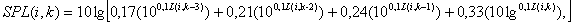 а L(i, k), L(i, k-1), L(i, k-2), и L(i, k-3) представляют собой фактические величины, измеренные анализатором с интервалом 0,5 с. При использовании данной аппроксимации калибровочный сигнал устанавливают без взвешивания.