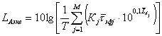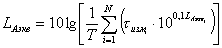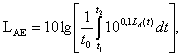 где t0 - исходная длительность, равная 1 с; t2-t1 - выбранный временной интервал; LA(t) - текущее значение уровня звука.
