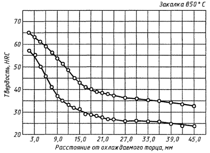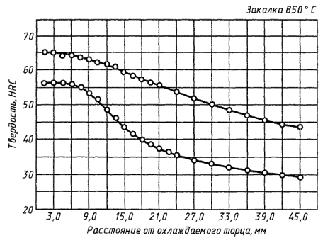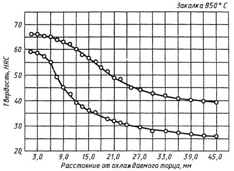 Черт. 4 ПРИЛОЖЕНИЕ 3Справочное ПРЕДЕЛЫ КОЛЕБАНИЙ ТВЕРДОСТИ (МАКСИМАЛЬНОЙ И МИНИМАЛЬНОЙ) ПО ДЛИНЕ ТОРЦОВЫХ ОБРАЗЦОВ ДЛЯ МАРОЧНЫХ ПОЛОС ПРОКАЛИВАЕМОСТИ