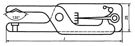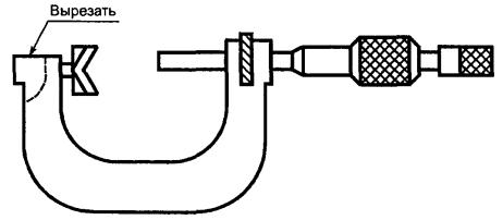 В обычном микрометре заменяют неподвижный плоский измерительный наконечник на призму с углом 135°. Чтобы призму можно было разместить внутри звена, конец скобы микрометра необходимо срезать в соответствии с рисунком В.2. Приборами можно измерять звенья любого калибра, используя сменные призмы.