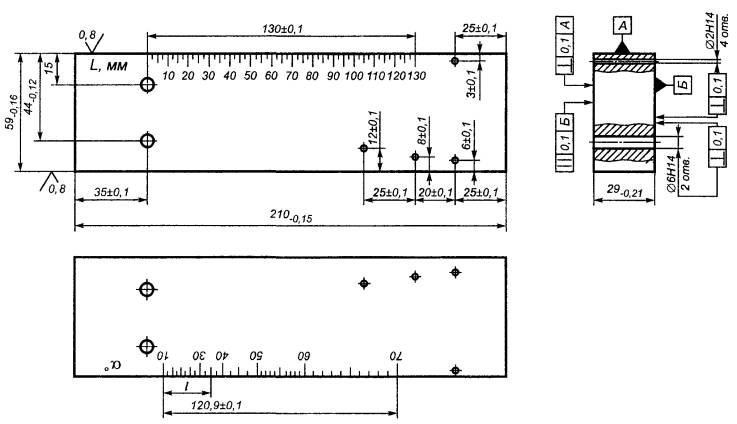 2 Миллиметровую шкалу гравируют или наклеивают. Нуль миллиметровой шкалы должен совпадать с плоскостью углового отражателя с погрешностью не более ±0,1 мм.