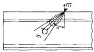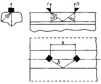 Контроль проводят дефектоскопом с преобразователем частотой 2,5 МГц с углом призмы β = 40°, радиусом пьезоэлектрической пластины а = 6 мм, изготовленным в соответствии с техническими условиями.