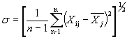 где Хij - содержание пестицидов в i-й объединенной пробе в j-ом сельскохозяйственном угодье, млн-1; n - количество объединенных проб. 11.5. Рассчитывается значение среднеквадратичного отклонения вариационного ряда s и коэффициент вариации n, %: