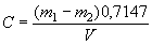 где т5 - масса кальция стандартного раствора, взятая для анализа, г; V1 - объем раствора трилона Б, израсходованный на титрование стандартного раствора, см3; V2 - объем раствора трилона Б, израсходованный на титрование раствора контрольного опыта, см3. Массовую концентрацию раствора трилона Б С1, определяемую по стандартному образцу и выраженную в г/см3 кальция, вычисляют по формуле