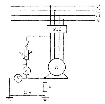 сопротивления регулируемого резистора Ток Примечание - Этот метод может быть использован для систем TN-S, ТТ и IT. В системе IT может быть соединение точки схемы с землей при проведении испытания, необходимое для срабатывания УЗО. Метод 2 На рисунке В.2