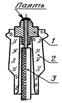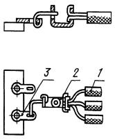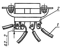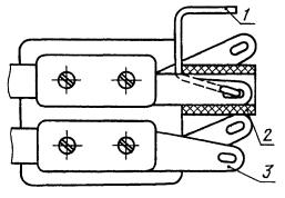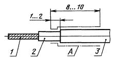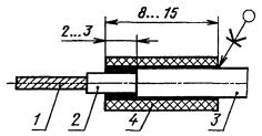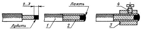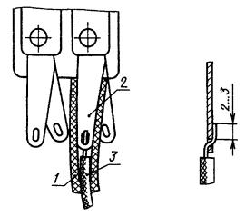 1 - провод; 2 - электроизоляционная трубка на клее; 3 - лепесток Рисунок 45