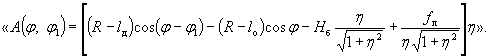где hнд, hвд нижняя и верхняя границы внутренней детали; lд - расстояние от внутренней детали до стенки первого пояса резервуара; fo - высота неровностей днища; А (φ, φ1) - величина, зависимая от углов φ и φ1 (см. рисунок А.10а), вычисляют по формуле
