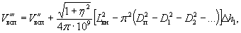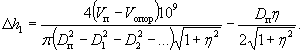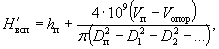 где Vп - объем жидкости, вытесненный плавающим покрытием, вычисляемый по формуле (Г.45); Vопор - объем опор плавающего покрытия. Если опоры смонтированы на днище резервуара, то значение Vопор в формуле (Г.48) принимают равным нулю; Dп, D1, D2, ... - диаметры плавающего покрытия и отверстий в нем; - при выполнении условия η > ηmin Н"всп вычисляют по формуле Н"всп = Hп + Δh, (Г.48а) где Δh - высота погружения плавающего покрытия, определяемая от нуля до предельной высоты Δhпред, решая уравнения (Vп - Vопор) = F(Δh), (Г.48б) где F(Δh) - функция, зависящая от высоты погружения плавающего покрытия, вычисляемая по формуле