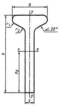 Обозначения к чертежу и таблицам: h - высота полособульба; b - ширина полки; s - толщина стенки; r1 - радиус закругления кромок полки; r2 - радиус сопряжения стенки с полкой; I - момент инерции; i - радиус инерции; Wx - момент сопротивления изолированного полособульба; Wx' - момент сопротивления полособульба с присоединенным пояском; y0 - расстояние от центра тяжести. Примечание. Для профиля номер 1455 уклон внутренних граней полок должен быть не более 15. (Измененная редакция, Изм. № 4). 1.2. Размеры полособульбов, площадь поперечного сечения, масса 1 м и справочные величины должны соответствовать указанным в табл. 1. Таблица 1