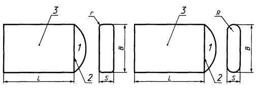 Дата введения 01.01.80 Настоящий стандарт распространяется на плоские слитки, отлитые из алюминия и алюминиевых деформируемых сплавов методом полунепрерывного или непрерывного литья и предназначенные для прокатки на листы, ленты и другие полуфабрикаты. Стандарт полностью соответствует СТ СЭВ 831-86. (Измененная редакция, Изм. № 3, 4). 1. СОРТАМЕНТ1.1. Форма и размеры слитков из алюминия и алюминиевых деформируемых сплавов должны соответствовать черт. 1 или 2 и табл. 1 и указываться в заказе-наряде. 1 - донник; 2 - мнимая линия; 3 - донная часть Черт. 1 Черт. 2 Радиус закругления ребер r (черт. 1) должен быть не более 20 мм, R (черт. 2) - не более 445 мм. По согласованию изготовителя с потребителем допускается замена плюсовых предельных отклонений по толщине и длине слитков на минусовые и изменение формы донника. Донником (для необрезанных слитков) считается (черт. 1 и 2) часть слитка, расположенная на расстоянии не более 200 мм от торца слитка до мнимой линии, измеряемом по середине широкой грани слитка. Таблица 1* * Таблица 2. (Исключена, Изм. № 4). Размеры, мм