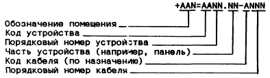 Квалифицирующий символ "-" в простом обозначении может быть опущен. Буквенный код кабеля (по назначению) может быть заменен цифровым или вообще опущен. Порядковый номер кабеля принимают в пределах панели, устройства, агрегата или цеха в зависимости от конкретных условий проектирования. 7.3. Буквенные коды кабелей (по назначению) приведены в приложении 5. 7.4. Структура сложного обозначения кабеля может быть представлена в виде