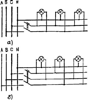 б) для светильников с люминесцентными лампами, имеющих электрические схемы для напряжения 380 В (например, с последовательным соединением ламп, с многофазными ПРА);