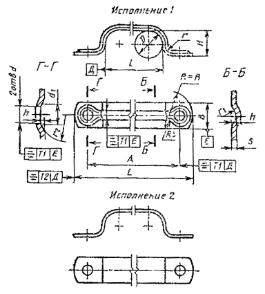 Пример условного обозначения трехместной скобы исполнения 1 D = 20 мм из стали марки 08 кп с покрытием Хим. фос прм: Скоба 1-20-08кп-Хим.фос.прм ГОСТ 24135-80 То же, исполнения 2 из стали марки 12Х18Н10Т с покрытием Хим. Пас.: Скоба 2-20-12Х18Н10Т-Хим.Пас. ГОСТ 24135-80. 3. Технические требования - по ГОСТ 24140-80. |