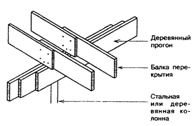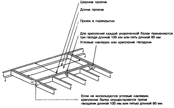 Элементы несущих конструкций могут скрепляться друг с другом также с помощью соединительных накладок (угловых листов). 8.2.2.5 Используемые для уменьшения пролетов и размеров сечения стропил промежуточные опоры в виде затяжек должны изготовляться из пиломатериала сечением не менее 38´89 мм. Затяжки длиной более 2,4 м должны соединяться между собой вблизи своей середины неразрезными элементами (связями) сечением не менее 19´89 мм, расположенными под прямым углом к затяжкам. 8.2.2.6 Гвоздевые крепления элементов каркаса (кроме приведенных в 8.2.2.4) следует исполнять в соответствии с таблицей 8.2. Таблица 8.2