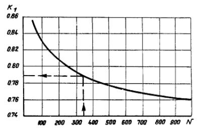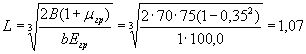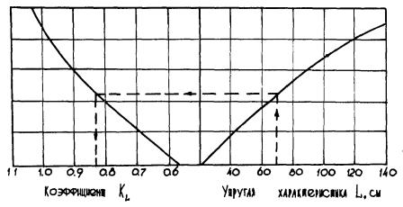 По номограмме (см. рис. 5) для приведенных исходных данных определяется значение Исходные данные для определения kL: Eобщ = 307 мпа (формулы 6, 7); L = 0,77 м (формула 5). По графику (см. рис. 6) определяется значение коэффициента kL = 0,87. Подставив