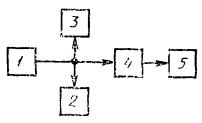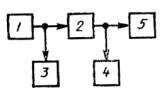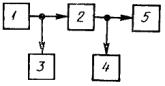 при градуировке шкалы вольтметра в децибелах DS = Nf - N1000(800), где Uf (Nf) - уровень (напряжение) сигнала на измеряемой частоте; U1000(800) (N1000(800)) - уровень (напряжение) сигнала на частоте 1000 Гц (800 Гц). 3.3.4. Коэффициент гармоник измеряют по схеме, приведенной на черт. 13. На входе тракта (звена) подают измерительный сигнал с номинальным максимальным уровнем. Длительность подачи сигнала не должна превышать 5 с. Коэффициент гармоник генератора не должен превышать 0,3 от минимального значения коэффициента гармоник измеряемого тракта (звена). 1 - низкочастотный генератор сигналов; 2 - измеряемый тракт или звено; 3 - вольтметр; 4 - измеритель нелинейных искажений или анализатор спектра; 5 - номинальное сопротивление нагрузки - резистор Черт. 13 Для измерений коэффициента гармоник должен быть использован анализатор спектра или измеритель гармоник. При использовании звеньев тракта с цифровой аппаратурой, в том числе при использовании в тракте проводного вещания усилителей ЗЧ, работающих в ключевом режиме, применяется только анализатор спектра. При измерении анализатором спектра коэффициент гармоник (Кг) в процентах вычисляют по формуле